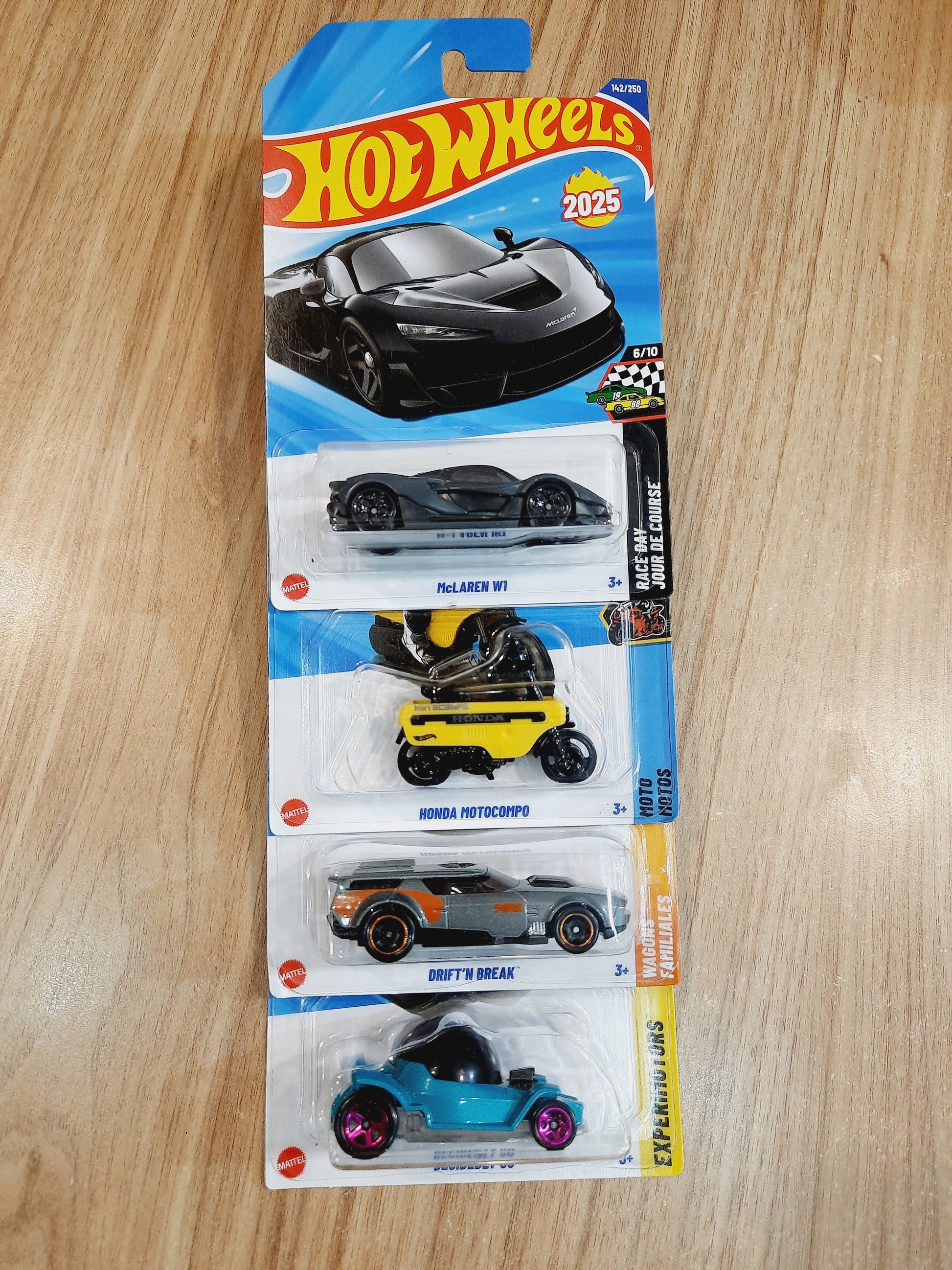 Hot Wheels McLaren W1, Honda Motocompo, Drift'n Break & Decidedly Go (combo pack of 4)